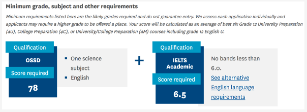 五湖OSSD學生健康科學或護理學最低錄取標準